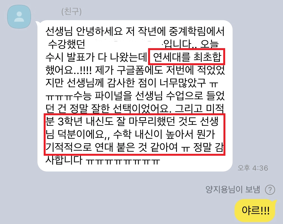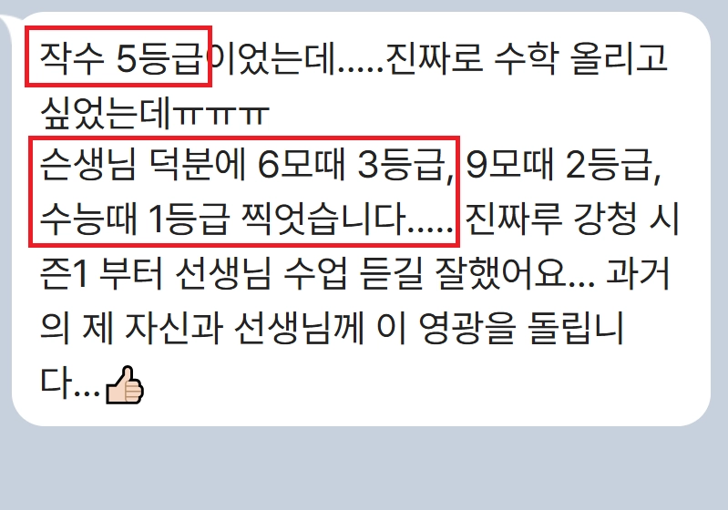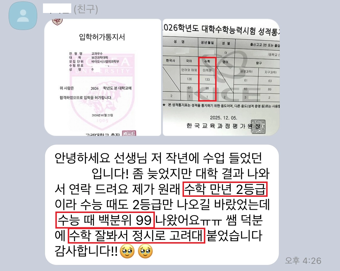 쌤 덕분에 수학잘봐서 정시로 고려대 합격했습니다😄