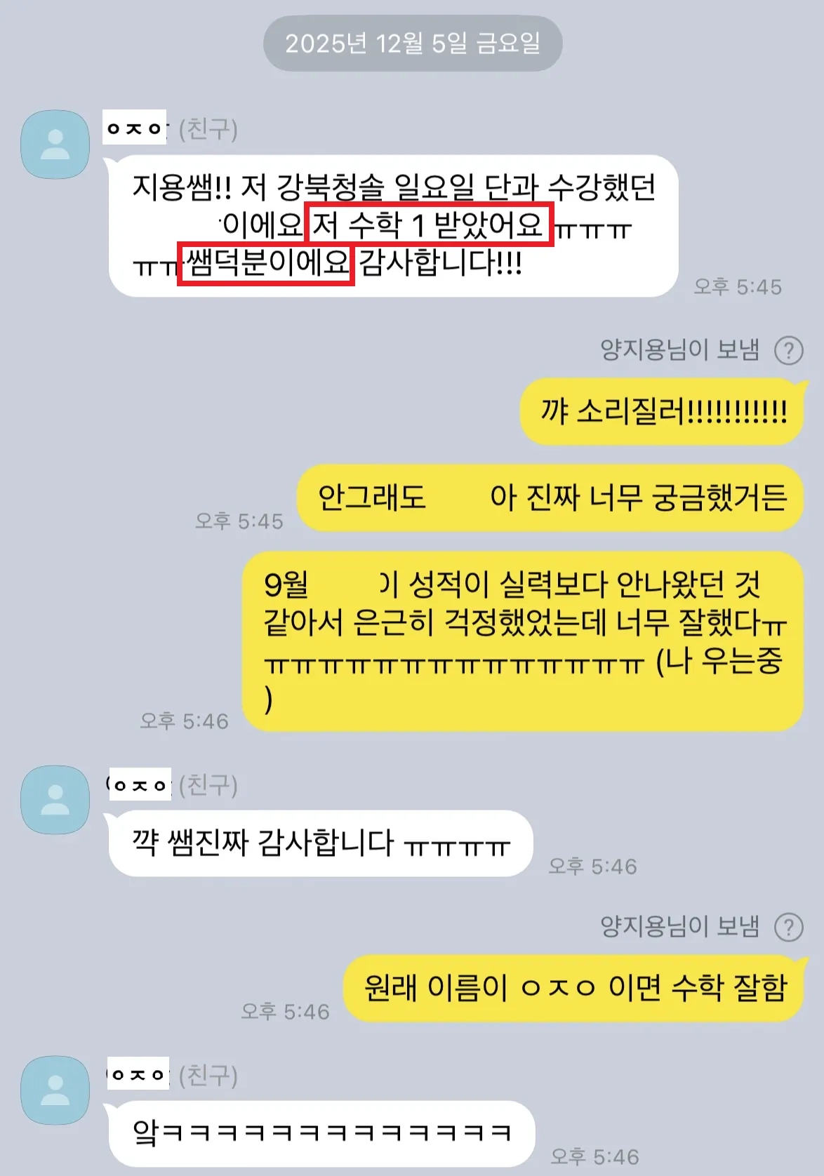 🥰 수능 후 제자들에게 온 연락 중 일부입니다.